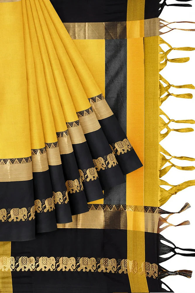 Gold & Black Soft Cotton Silk Sunburst & Shadow Saree For Women
