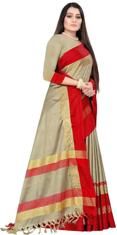 Tusar Red Soft Cotton Silk Crimson Elegance Saree For Women