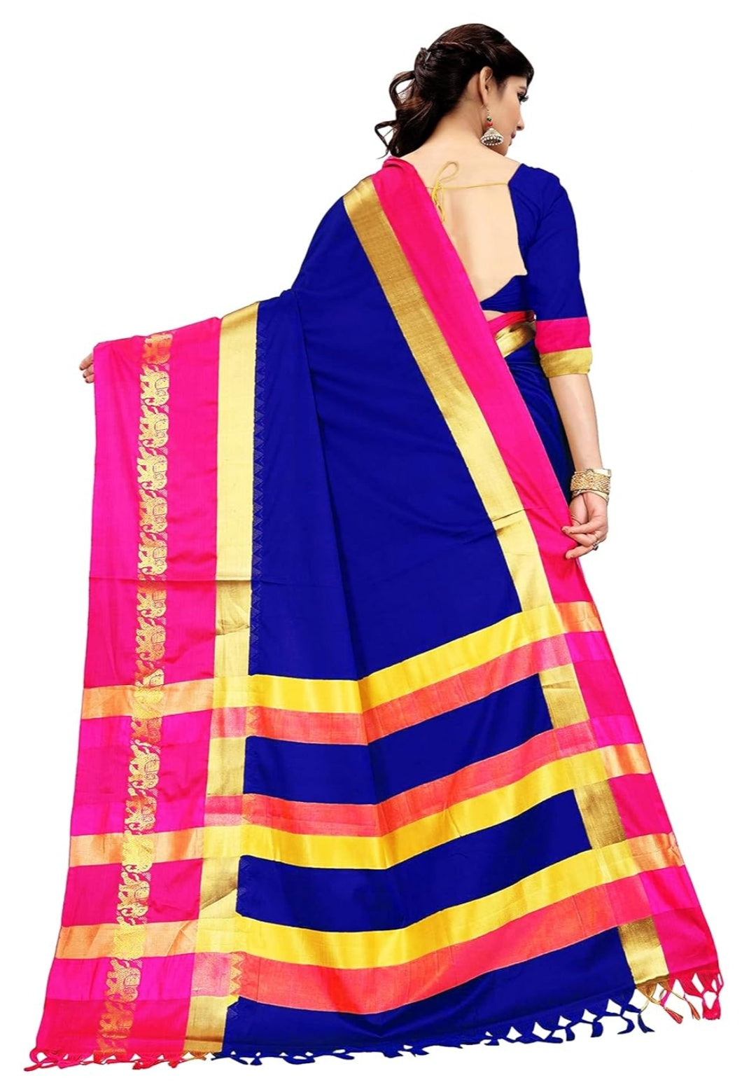 Navy Blue & Pink Soft Cotton Silk Marine Blush Bloom Saree For Women