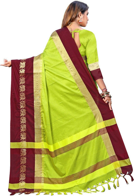 Lemon Green & Brown Soft Cotton Silk Citrus Earth Bloom Saree For Women
