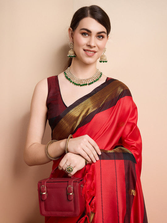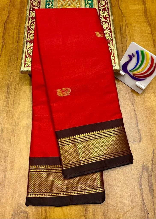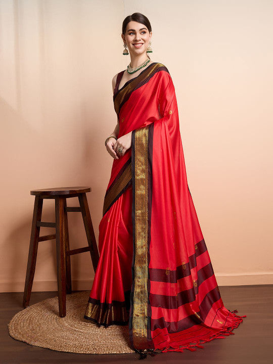 Red Brown Soft Cotton Silk Timeless Crimson Saree For Women