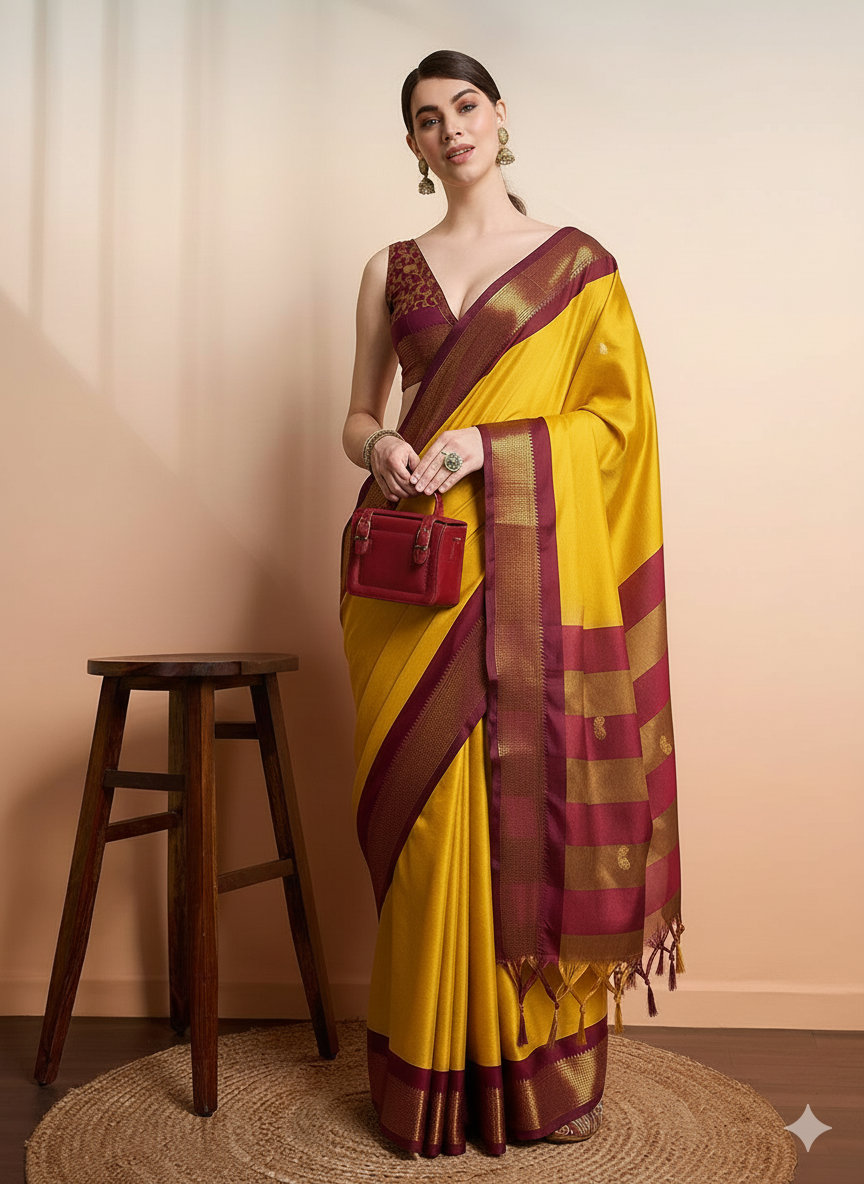 Mango Brown Soft Cotton Silk Drift Saree For Women