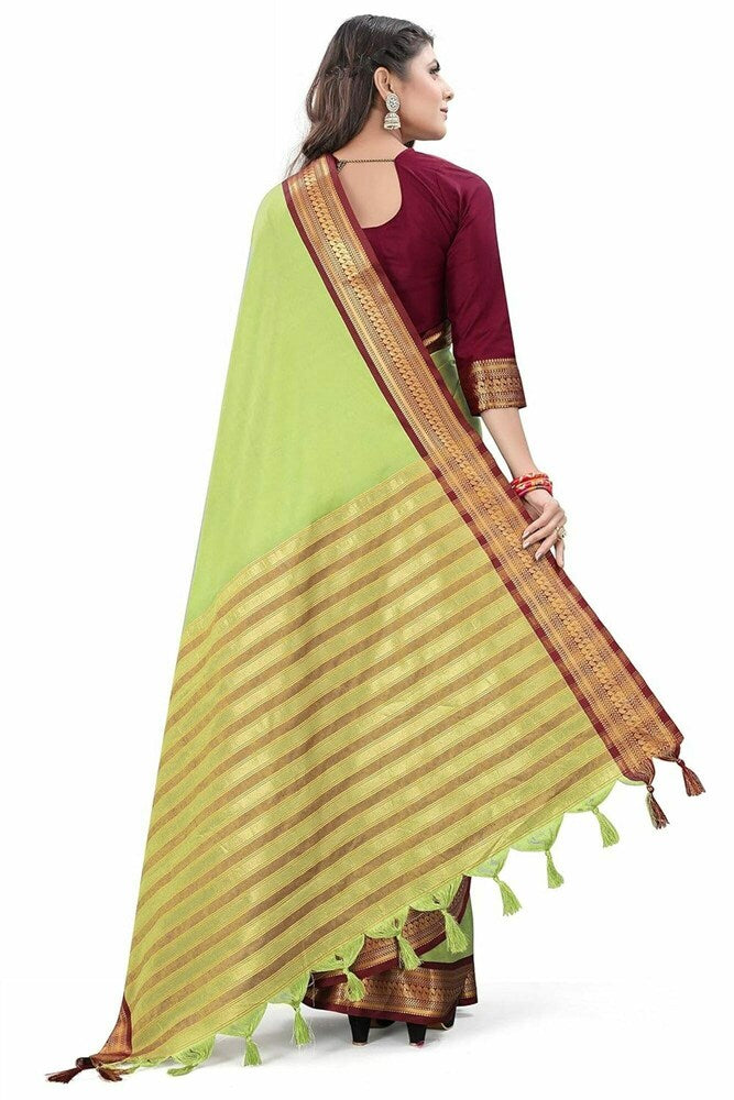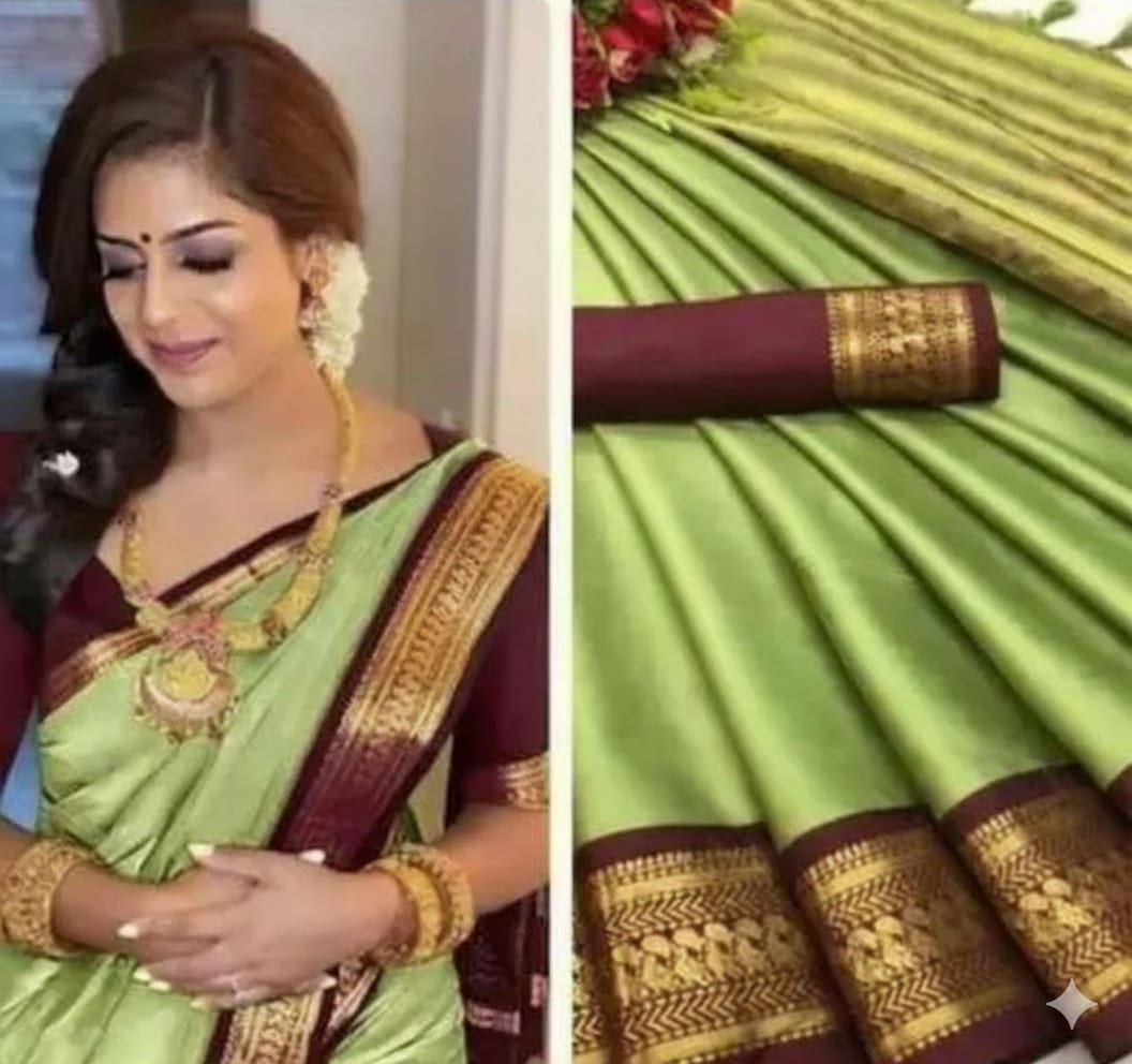 Sage Green Brown Soft Cotton Silk Mocha Mist Saree For Women