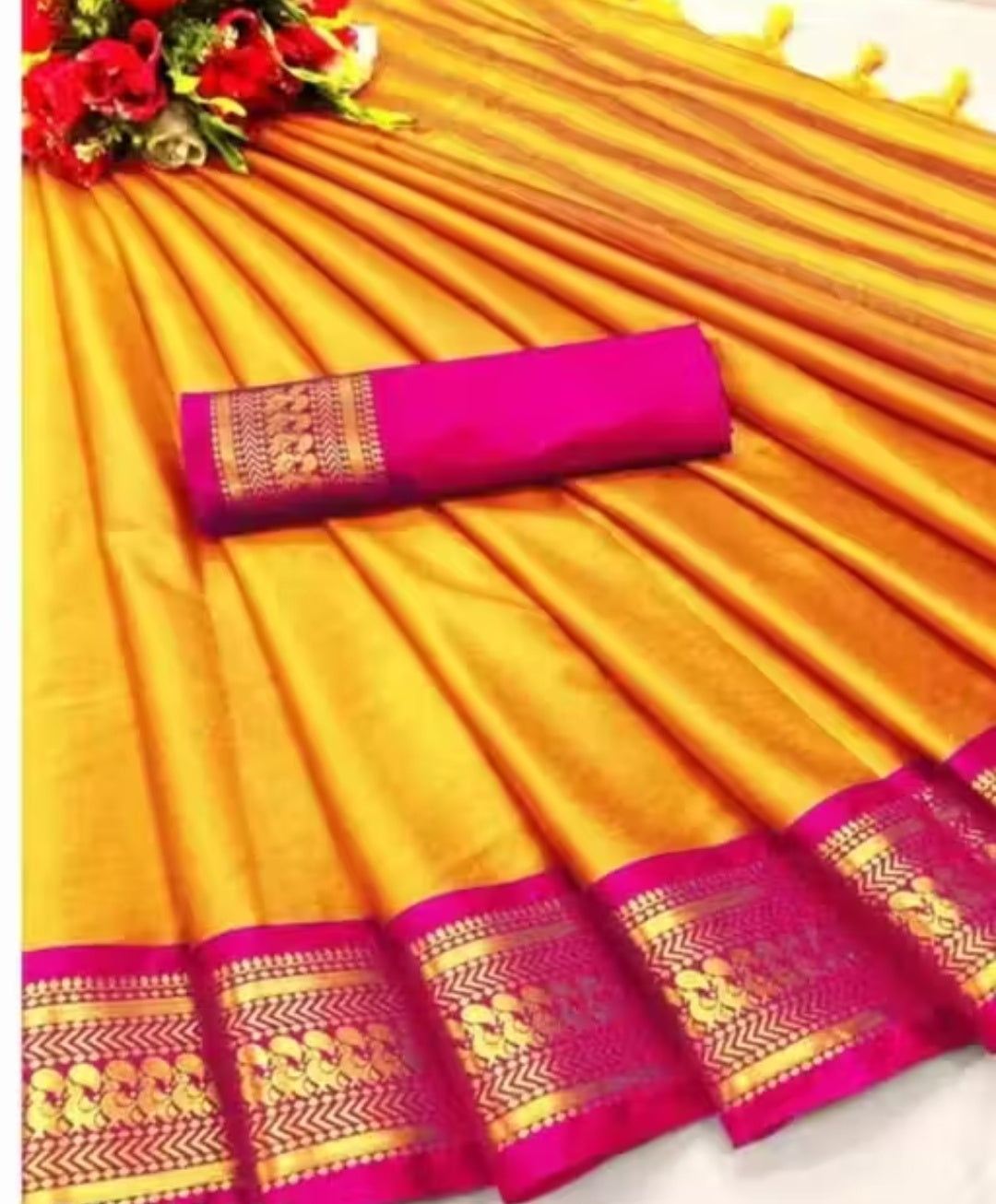 Mango Pink Soft Cotton Silk Peach Blossom Gleam Saree For Women