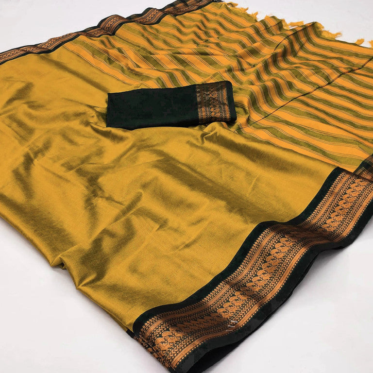 Gold Black Soft Cotton Silk Gilded Onyx Essence Saree For Women