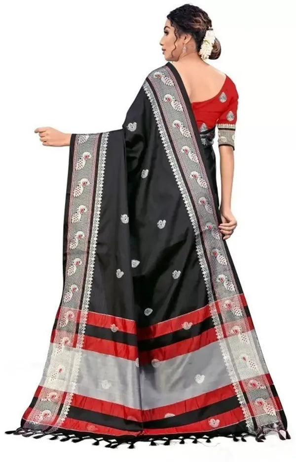 Black Soft Cotton Silk Midnight Noir Grace Saree For Women