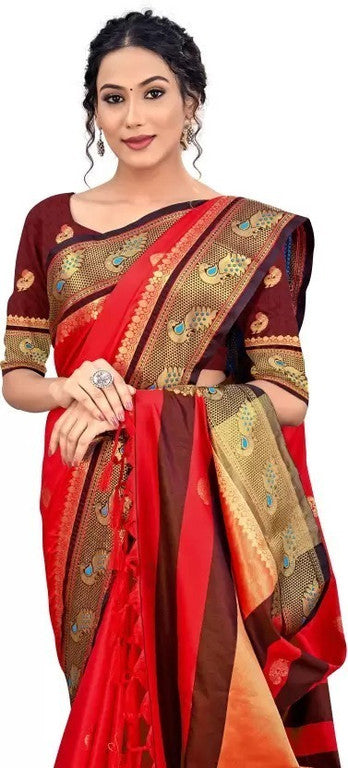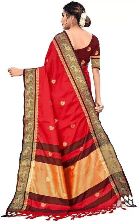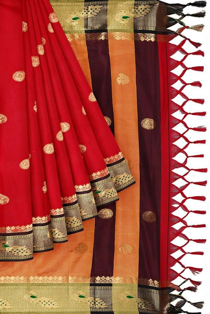 Red Black Soft Cotton Silk Crimson Shadow Charm Saree For Women
