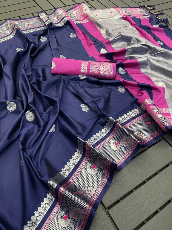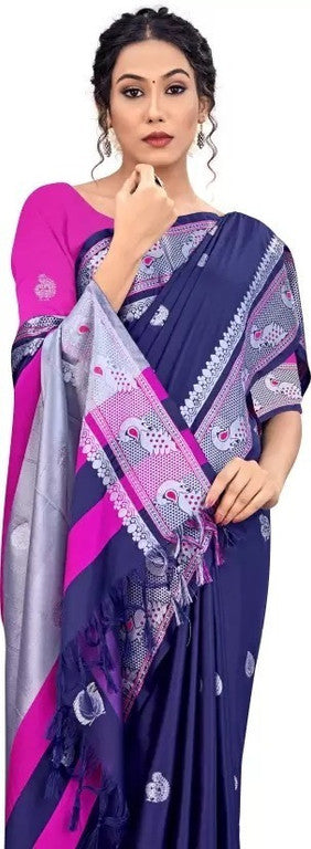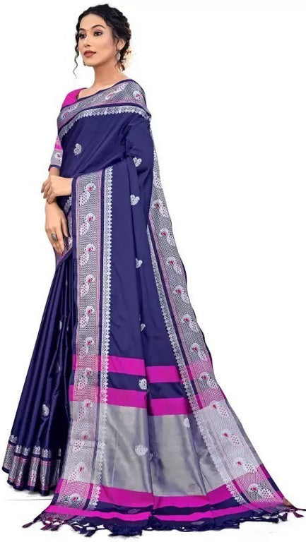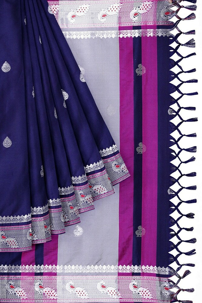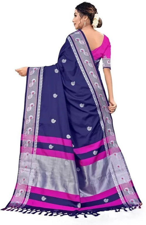 Navy Blue Soft Cotton Silk Sapphire Nightfall Charm Saree For Women
