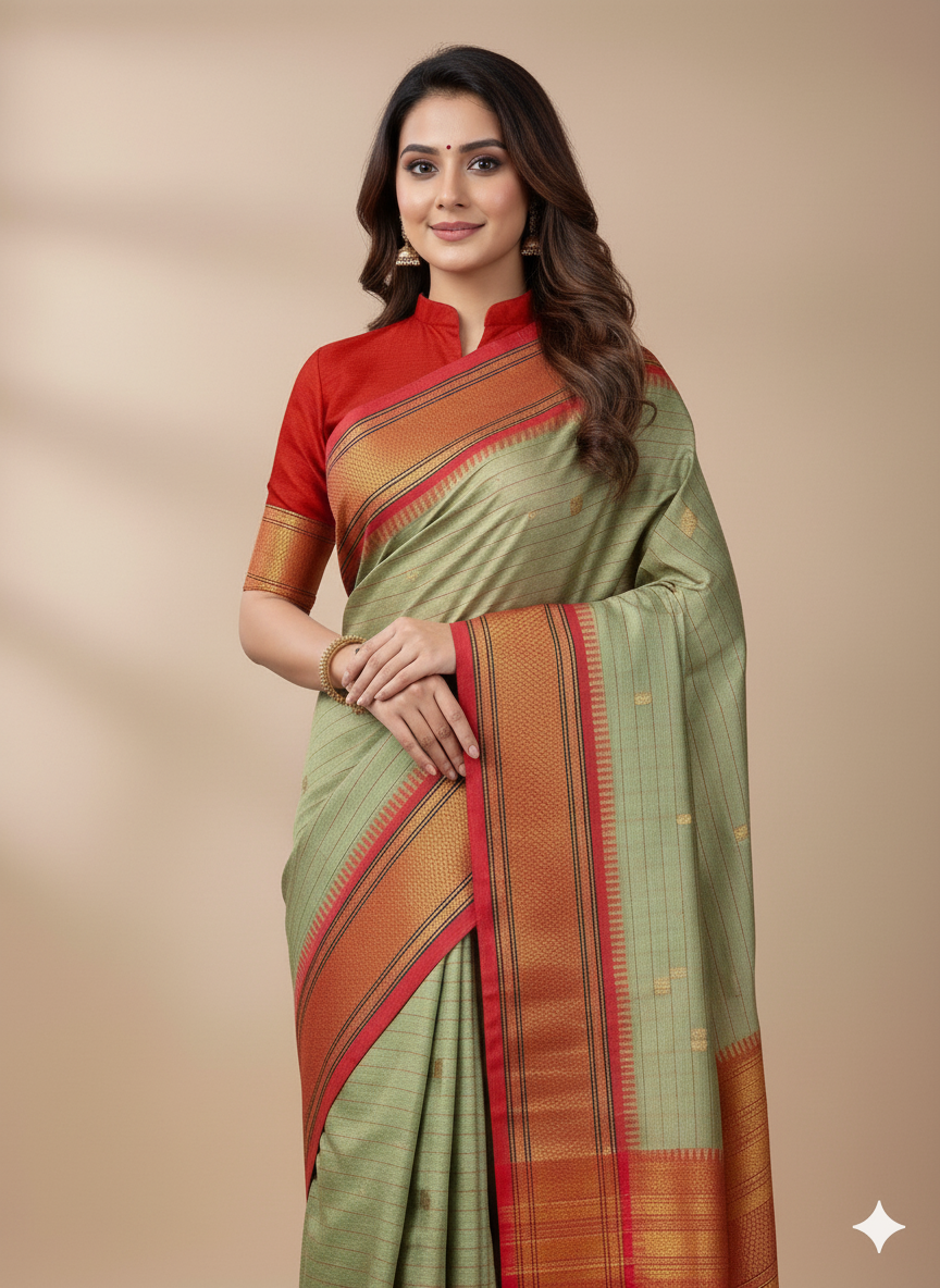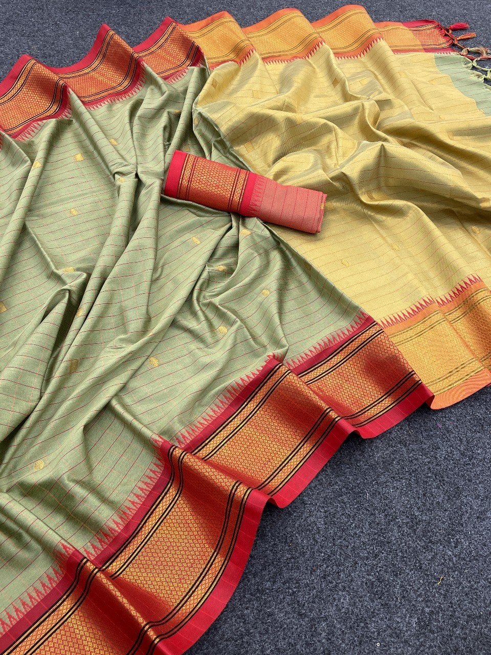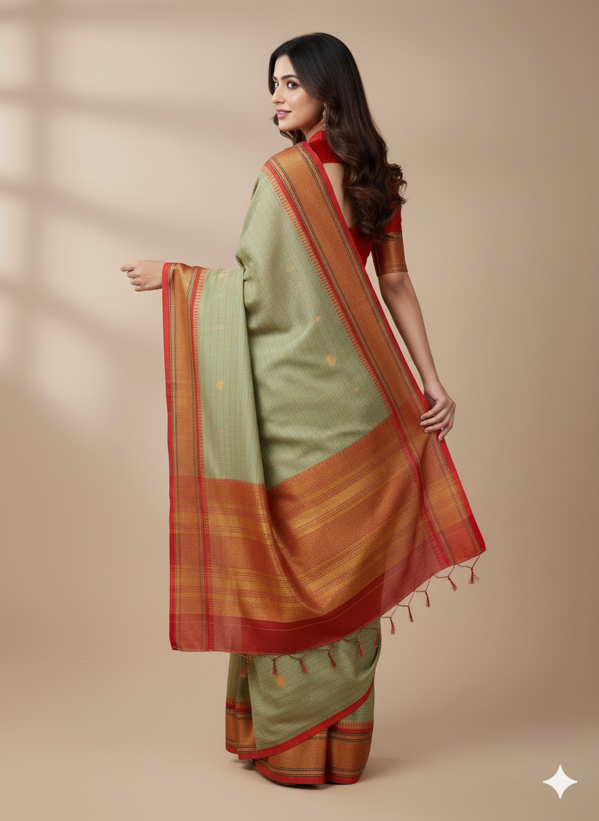 Olive Green Red Soft Cotton Silk Olive Ember Harmony Saree For Women