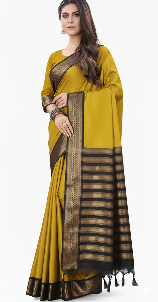 Gold Black Soft Cotton Silk Gilded Onyx Essence Saree For Women