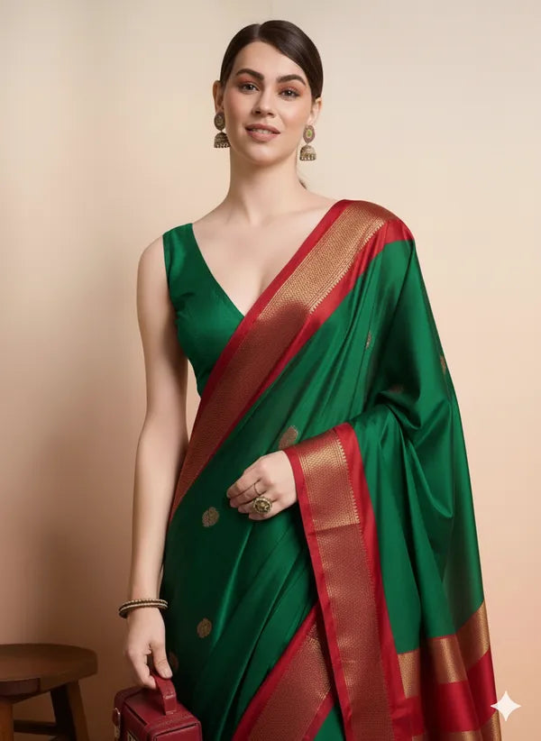 Green Red Soft Cotton Silk Verdant Ruby Whisper Saree For Women