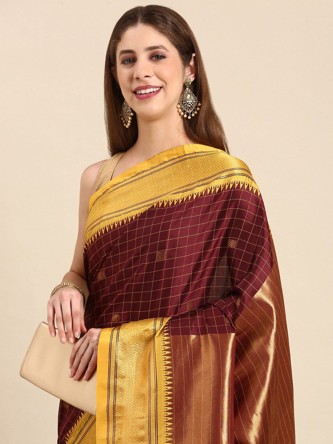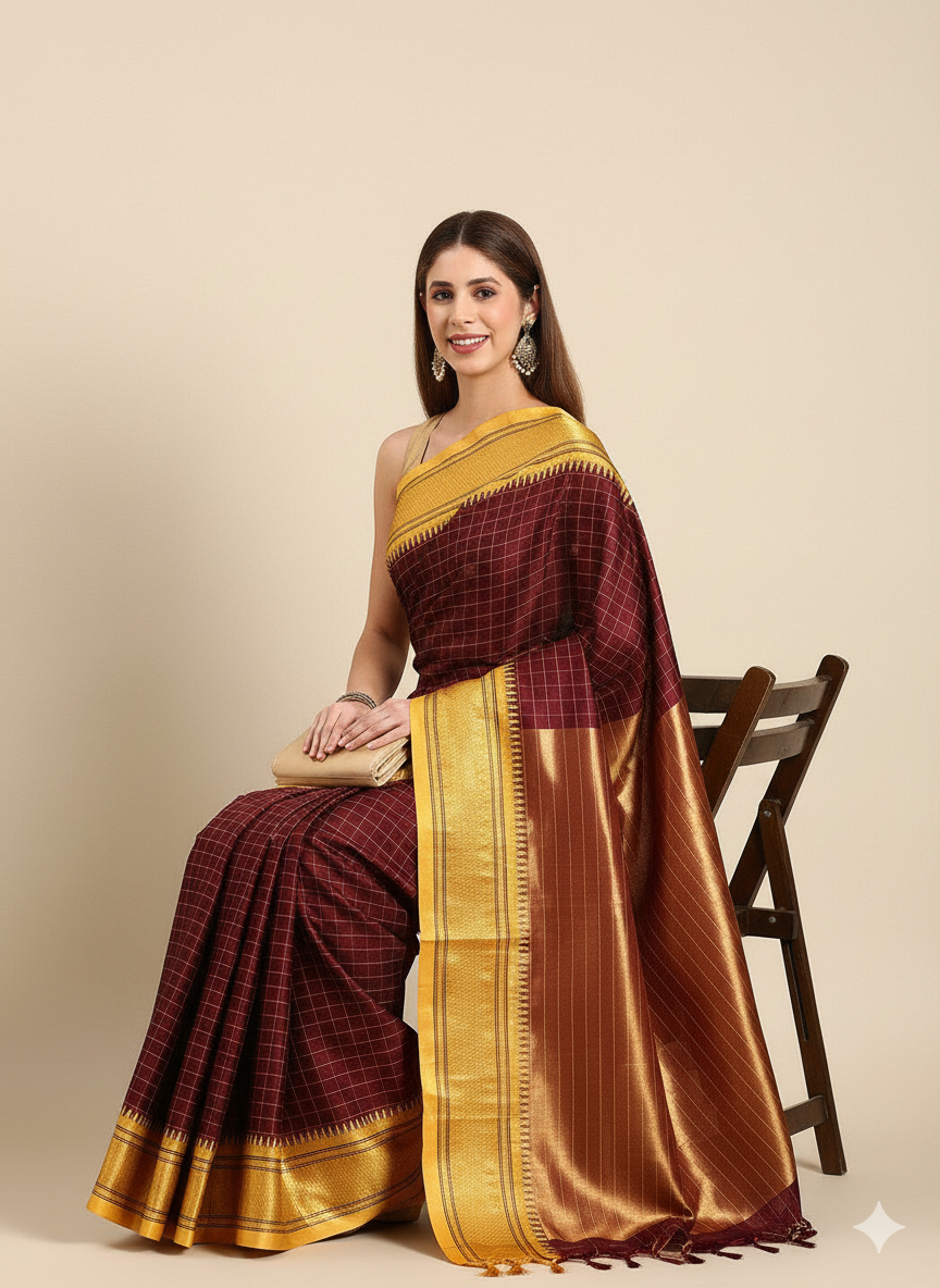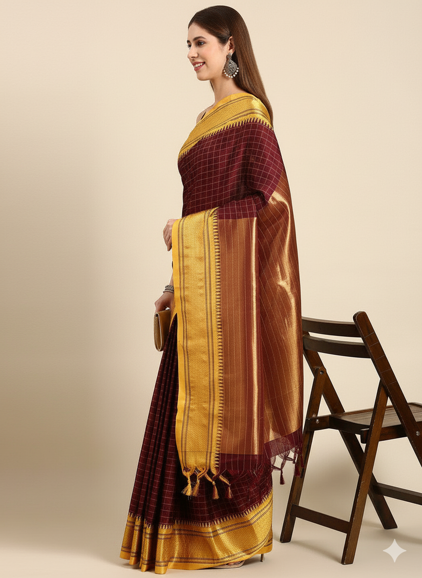 Maroon & Yellow Soft Cotton Silk Regal Charm Saree For Women