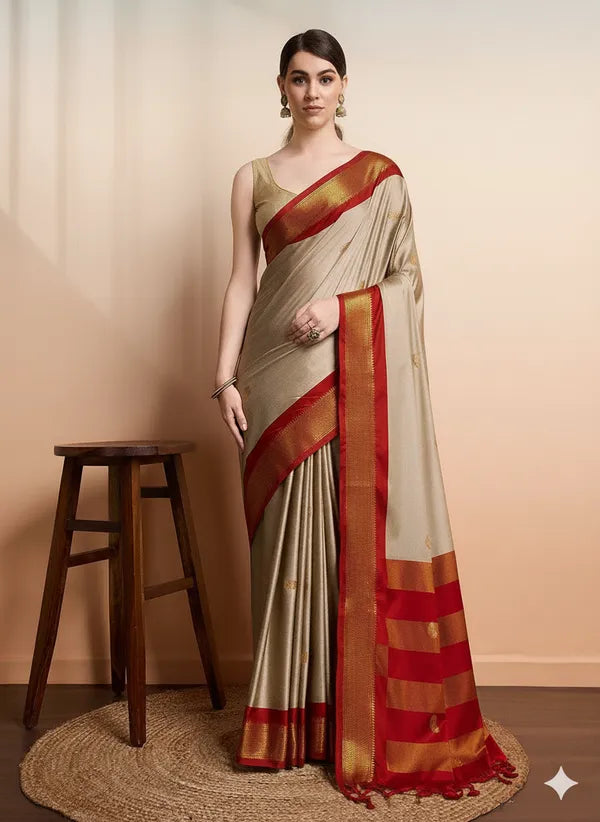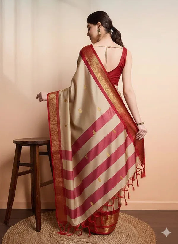 Tusar Red Soft Cotton Silk Ruby Grace Saree For Women