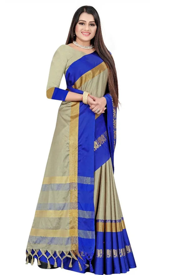 Tusar Sky Blue Soft Cotton Silk Mirage Saree For Women